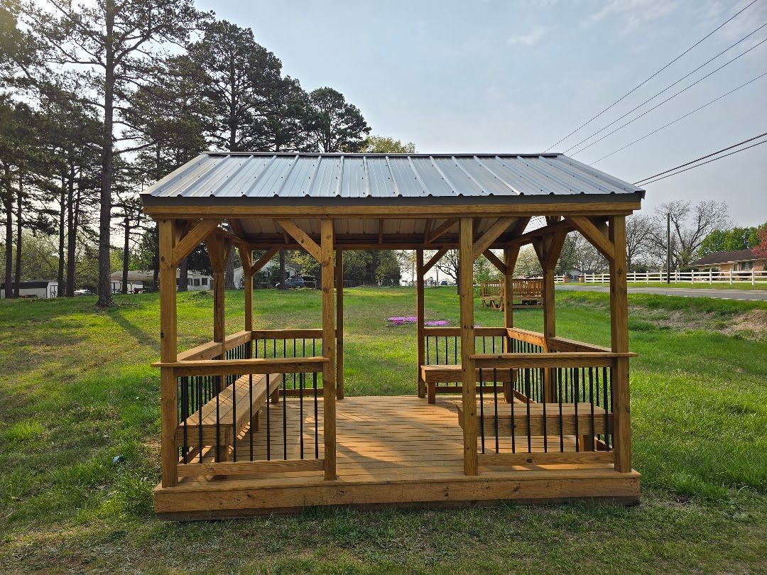 Level Up Portable Decks builds open-air pavilions in Sidney, Montana for homeowners and property owners who need covered outdoor space that handles wind, snow load, and seasonal temperature shifts. You get a framed structure with a solid roof that provides shade in summer and keeps rain and snow off seating, grilling, or dining areas. These structures work well for backyards, parks, and entertainment spaces where you want usable outdoor area that isn't limited to fair-weather days.